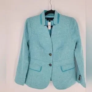 Turquoise Bicolor Herringbone Classic Shetland Blazer Size 6 New