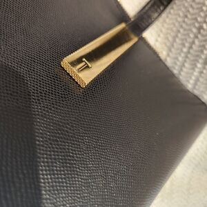 Elegant tote with vibrant floral pattern. Features sturdy handles and gold accents. Perfect for any occasion.