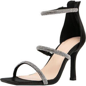 Women's Rhinestones Black Strappy Back Zip Casual High Heels Sandals Shoes