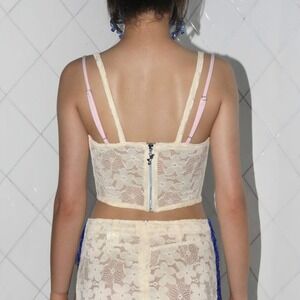 Sketch-Y Aelia Corset in Ivory Yellow & Baby Pink NEW S Repaired Strap