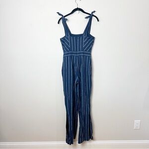 Rachel Roy Kate Linen Striped Shoulder Tie Jumpsuit