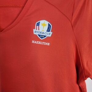 Nike Dri Fit Tee Shirt Golf Shirt Women's Size Large Red V Neck Ryder Cup 2016