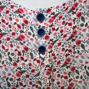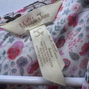 Matilda Jane Womens Size S Floral Stripe blue pink Tunic Top Cap Sleeve Buttons