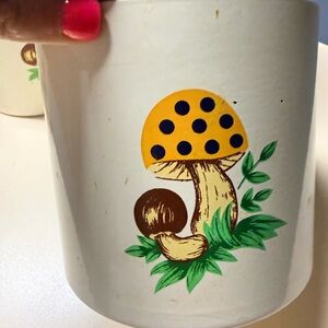 This vintage 1979 Merry Mushroom 4 Piece Canister Set by Sears Roebuck & Co. Japan is a charming addition to any kitchen. Made of plastic, ceramic, and porcelain, this canister set features a whimsical Merry Mushroom theme in a multicolor design. Each canister has a lid and is free-standing for easy use. This original set from the 1970s adds a touch of shabby style to your kitchen decor and is sure to be a collector's item for those who appreciate retro kitchen items.