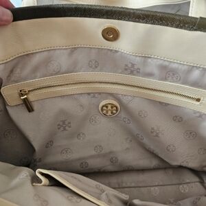Tory Burch Robinson Shoulder Bag. Preowned in excellent, slight dirt inside and on bottom of bag, barely noticeable.