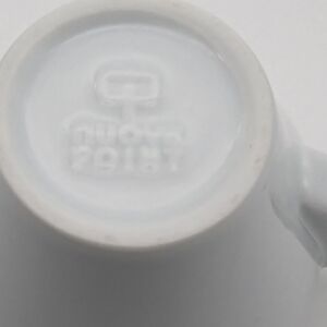 Sip your favorite drink in this stylish white mug featuring a bold black graphic. Perfect for adding a touch of personality to your dining experience.