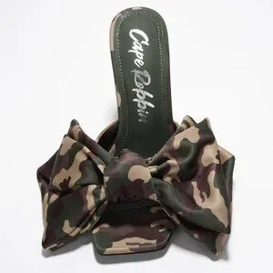 Women's Multicolor Bow Slip On Square Toe Hight Heeled Heels Sandals Shoes