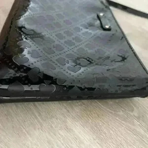 In great conditions. Zipper Shoulder bag/ Crossbody , black shiny leather, 4 card pockets. No tears or scratches on leather.
