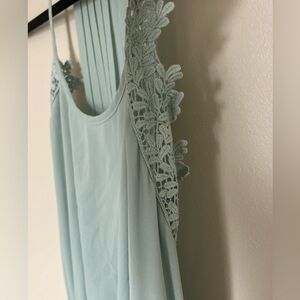 Beautiful sage green dress perfect for a wedding size XS but fits more like S. Lace details on the side and flowy double lined midi length