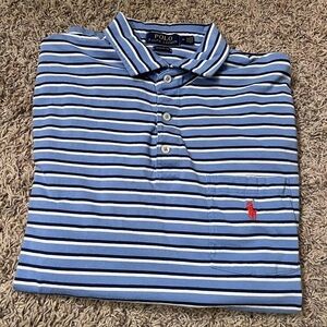 Polo Ralph Lauren Mens Blue Striped Pocket Polo Sz M