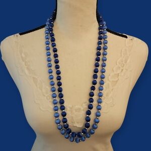 Vintage Set of Two Silk Thread Blue Beaded Necklaces