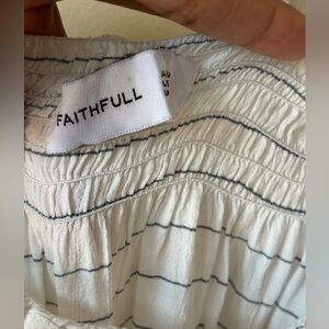 Faithfull the Brand Off Shoulder Smocked Neck Curve Hem Stripe Top Size US 4
