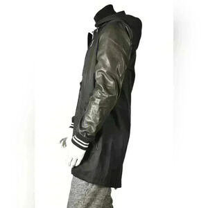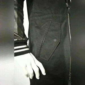 MACKAGE Black Cotton Canvas Leather Mixed Media Coaches 3/4 Jacket Medium