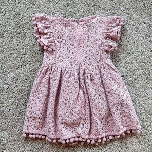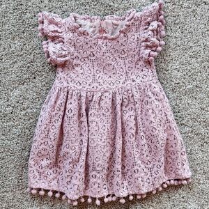 Baby Girl Pink Lace Dress with Pom Pom Trim Pink Easter dress- Size 6 months