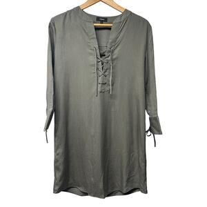 Theory Jullitah R2 Tencel Olive Green Lace Up Shirt Dress 3/4 Sleeves Size 4