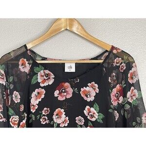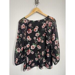 Cabi Black Floral Sheer 3/4 Sleeve Blouse Lined Top Women's Size Medium M Career