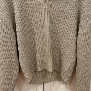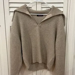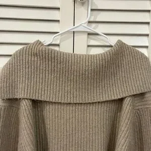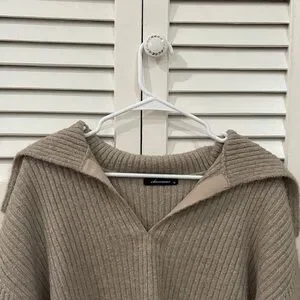 Elegant ribbed design with a cozy V-neck. Perfect for layering. Deep V-neck. Super comfortable material. Great condition. Large collar that can be worn up or down.