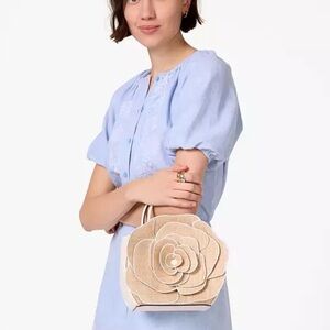 Kate Spade Flora Rose Flower Straw Leather Bucket Tote Crossbody Purse NWT