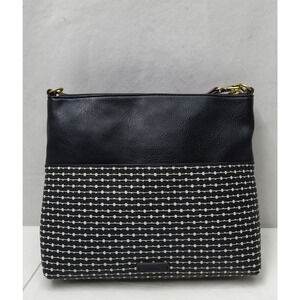 Fossil Black Coated Canvas Leather Trim Zipper Crossbody Bag