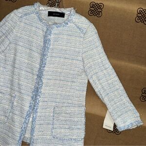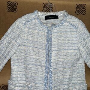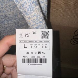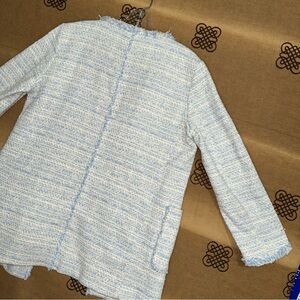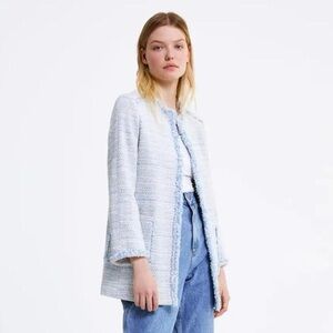 Zara NWT! Blue Kate Middleton Style Tweed Jacket In Light Blue Size L