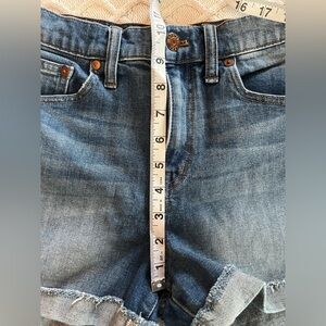 EUC excellent condition! Great quality Jean shorts! Designer, Madewell. Cuffed. Distressed, medium wash. Size Tag cut out but based on measurements in photos- Women’s 26. Cotton & elastane blend. Stretch. Smoke free home.