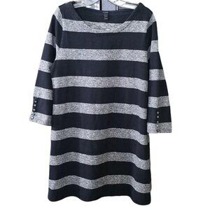 J Crew Size L Dress Maritime Stripe Sweater Long Sleeve Button Detail Nautical