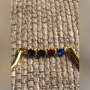 This Tocoa bracelet features a heart shape design with five multicolor crystal stones set in gold tone. Made of stone material, the bracelet is stylish and eye-catching, perfect for adding a touch of glamour to any outfit.