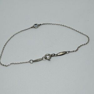 This exquisite bracelet from Tiffany & Co. showcases a delicate silver chain adorned with a blue aquamarine bezel, embodying timeless elegance and sophistication. The fine craftsmanship and minimalist design make it a versatile piece, perfect for any occasion.