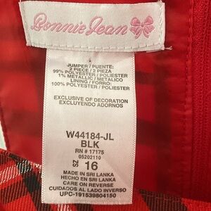 Bonnie Jean red plaid jumper Christmas holiday dress Girls Size 16 ( D - 8)