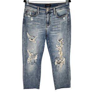 Judy Blue Multi Color Plaint Splash Destroyed Denim Boyfriend Fit Jeans sz 28
