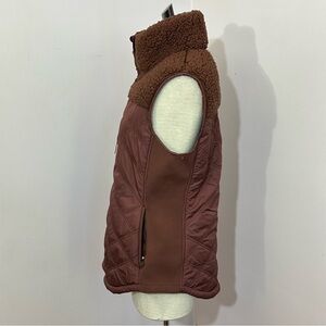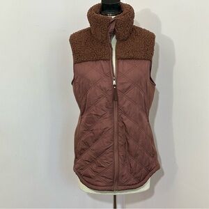 Light chocolate brown quilted body with fleece shoulders, lining and collar