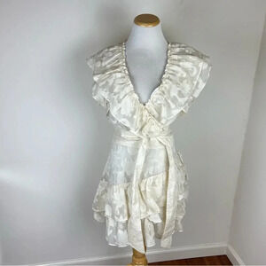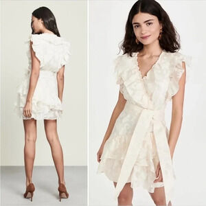 Veronica Beard Mahita Ecru Silk Jacquard Ruffled Cream Size 6