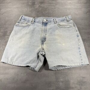 Vintage Levi's Jean Shorts Men 39x7 Denim Jorts Light Wash Faded Western Cowboy