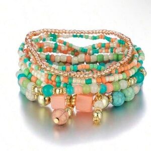 Add a pop of color to your outfit with this multicolor beaded bracelet set. Perfect for any occasion.