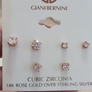 Giani Bernini Rose Gold and Silver Cubic Zirconia Stud Set