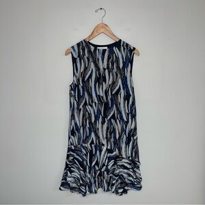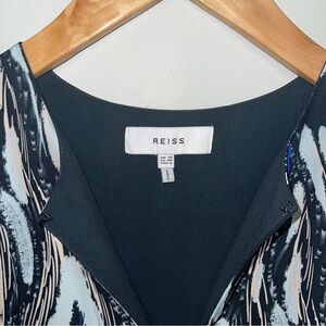 Reiss Dress Women's Size 6 US Black Blue Grey Abstract Ruffle Sleeveless Mini