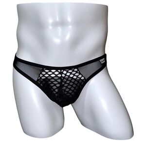 Jockmail Mesh Fishnet Sheer Thong Black Size L (30-32) JM220 NWT