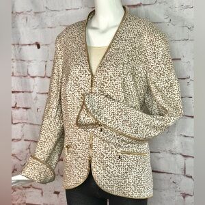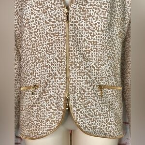 ESCADA M Tan & Cream print Gold Zipper detail Moto vibe Size EU 44 jacket blazer