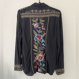 🖤JOHNNY WAS MARCHELLA FITTED BLACK SILK EMBROIDERED SHIRT S