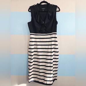White House Black Market Black and Cream Striped Midi Dress