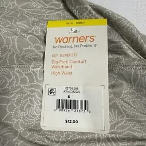 Warner's Brief Underwear Women's M/6 High Waist No Pinch Panty Beige Navy 2 pair
