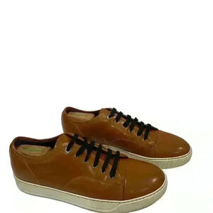 Up for sale LANVIN DBB1 Men’s Brown Patent Leather Sneakers Casual White Rubber Sole Size UK 9 US 10