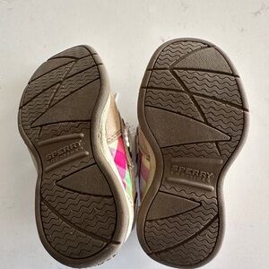 Stylish tan moccasins with vibrant pink lining. Comfortable and durable for everyday wear.like new toddler shoes
