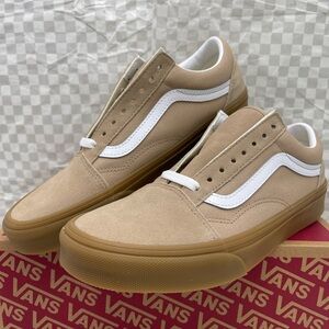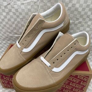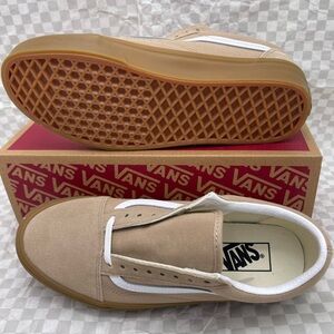 New in the box authentic Vans Men's Beige and White Sneakers Old Skool