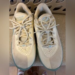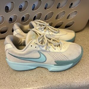 Nike Women's Cream and Light Blue Basketball Athletic Shoes