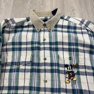 Vintage Disney Mickey Mouse Football Flannel Shirt Men's Large Plaid 90s Preppy