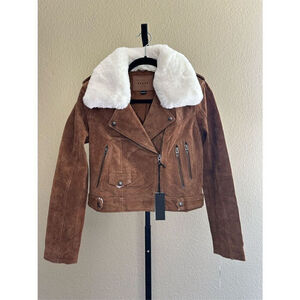 Blank NYC Alder Suede Faux Fur-Collar Moto Jacket Size S