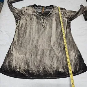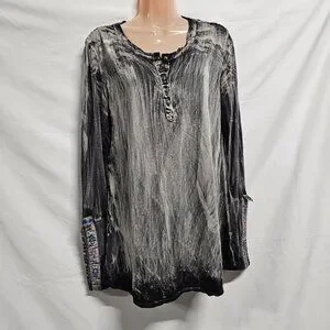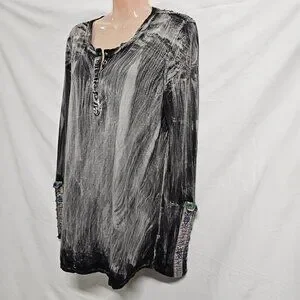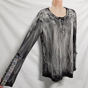 Aratta Silent Journey Women Size M Boho Popover Top Tunic Embroidery Acid Washed