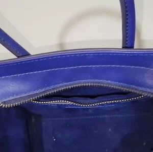 EUC designer inspired cobalt blue Handbag. No visible damage on straps or exterior. Zippers work great. Interior needs lint roll. Price reflects authenticity & pictures show great condition. Measurements pictured.
