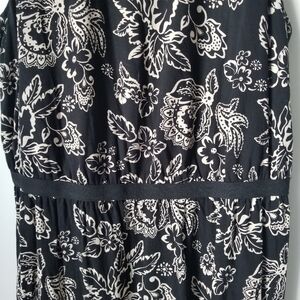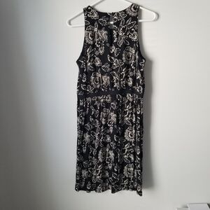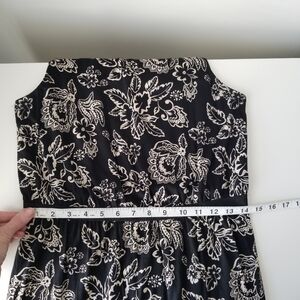 Gently used Ann Taylor LOFT Sleeveless midi dress with a black and white floral print. Size is small.